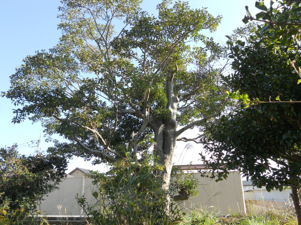所有している最も高い脚立は2メートルほどです。これをまっすぐ梯子状態にして幹に立て掛けます。ところが4メートルの梯子の上まで登ってもまだ高さが足りません。だからと言って木によじ登るのはさらなる勇気が必要です。