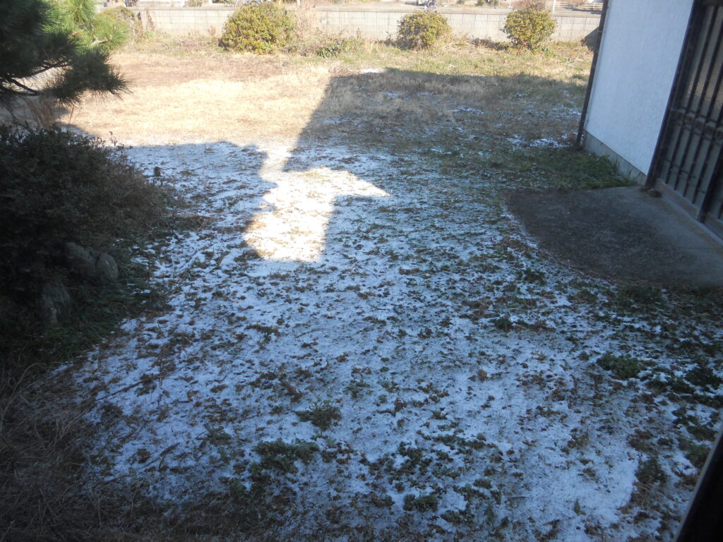 事務所の敷地内には昨日の雪が残っています。建物の北側でなかなか日が当たらないために溶けるのが遅いようです。